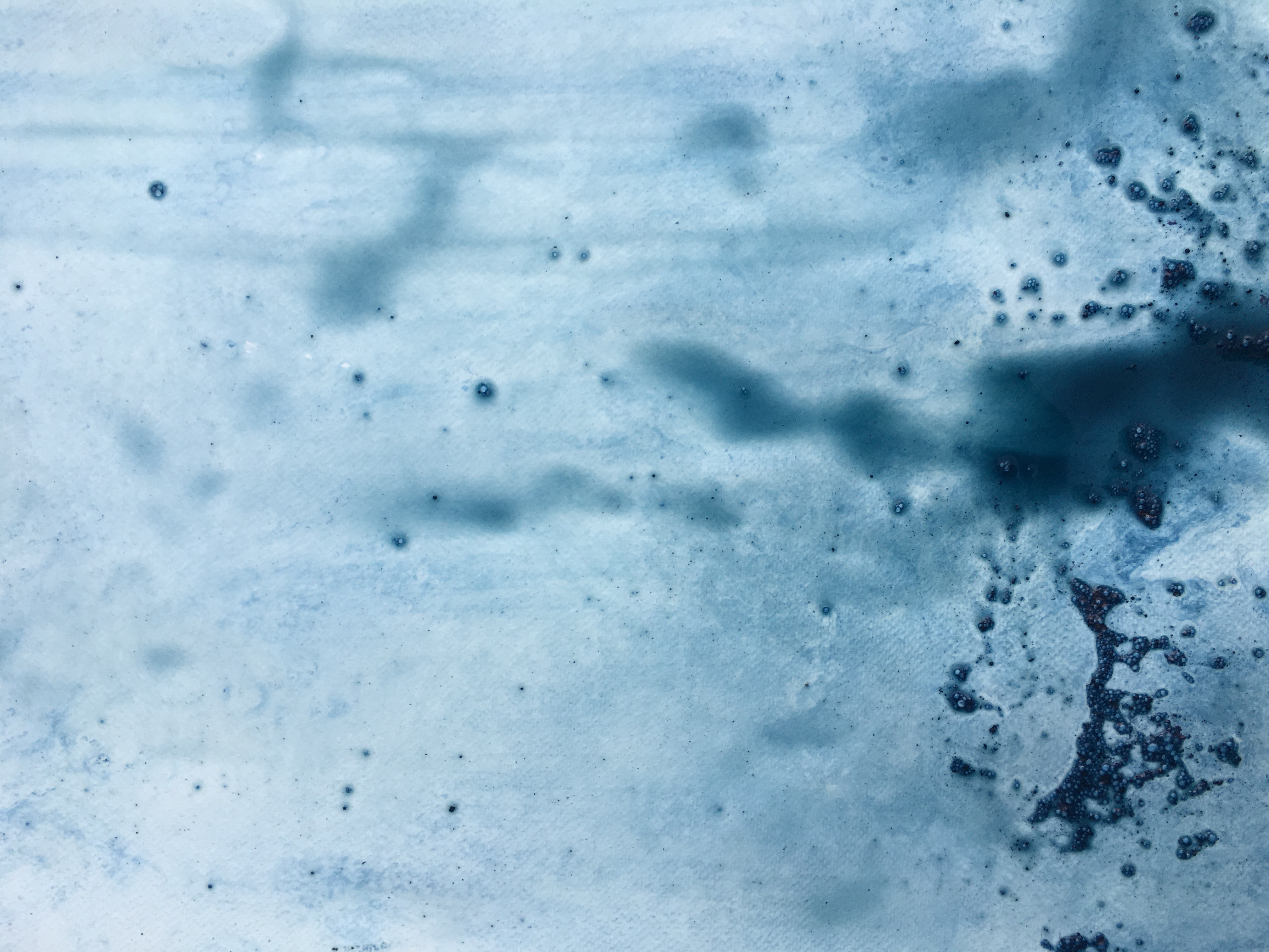 Criei assim uma grande série de pinturas em papel Arches 100% de algodão. São todas únicas e revelam-se de forma diferente perante cada olhar. Convido as pessoas a observar e a mergulhar em cada pintura, e a serem transportadas para uma experiência sensorial com a água. O mar profundo, as nuvens do céu, o glaciar da montanha, o gelo da Antártida.